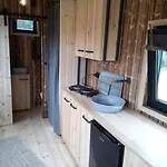 De gesitueerde in Apelern Tiny House Calido Villa heeft 1 slaapkamer en 1 badkamer. De accommodatie biedt tuinzichten. Badkamervoorzieningen omvatten zowel een apart toilet en een douche, evenals een droger en handdoeken.