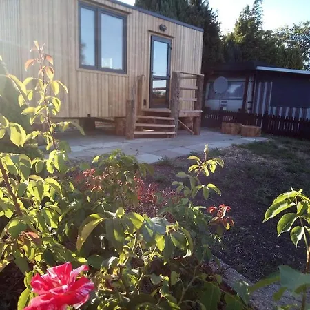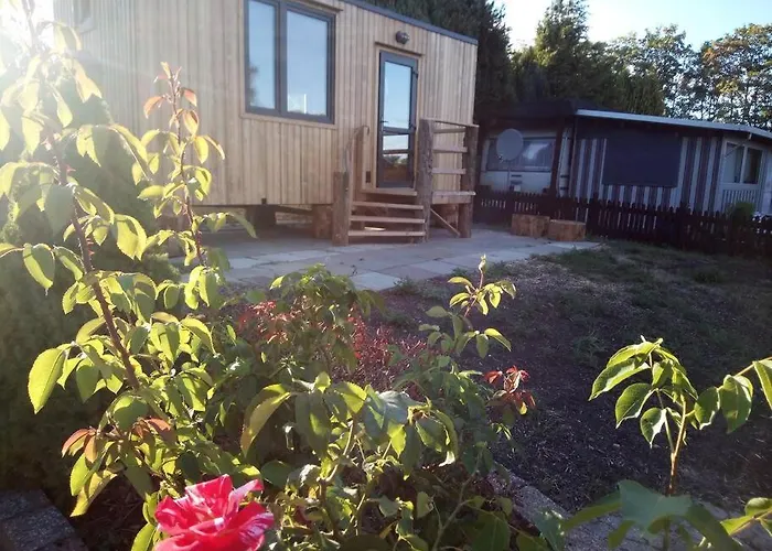 Tiny House Calido Villa ligt binnen 6 km afstand van het Heimatmuseum Rodenberg en nodigt gasten uit om te ontspannen op een terras.